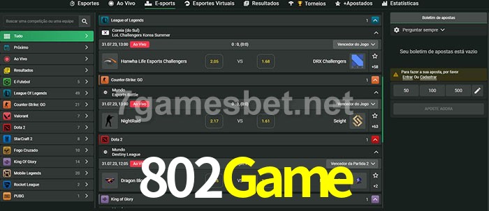 O 802Game oferece uma grande seleção de opções de apostas em e-sports com probabilidades competitivas